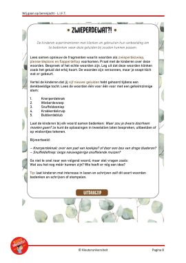 Ik heb dit boek vroeger met zeer veel plezier voorgelezen aan mijn eigen kinderen en later nog vaak in mijn kleutergroepen. Nu mocht ik er een L.I.F.T. project bij maken! Het taalplezier en de oplopende spanning in het verhaal vormen een gouden combinatie. De tekst leent zich goed om deze samen met de kinderen op te leren zeggen, met aandacht voor intonatie en tempowisselingen. Deze klassieker is niet meer weg te denken. Des te leuker om aan de slag te kunnen gaan met uitdaagtips en Denksleutelopdrachten. Het activiteitenblad gebruik je om de kinderen een berenspoor uit te laten zetten door de school of op het plein. Zo kun je steeds weer op berenjacht!