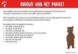 In dit pakket vind je een complete set met geïllustreerde elementen om het boek van ‘Wij gaan op berenjacht’ tot leven te brengen op jouw verteltafel. Alle onderdelen zijn voorzien van een duidelijke kniplijn en een handige plakrand, zodat je ze eenvoudig kunt uitknippen en driedimensionaal kunt neerzetten.