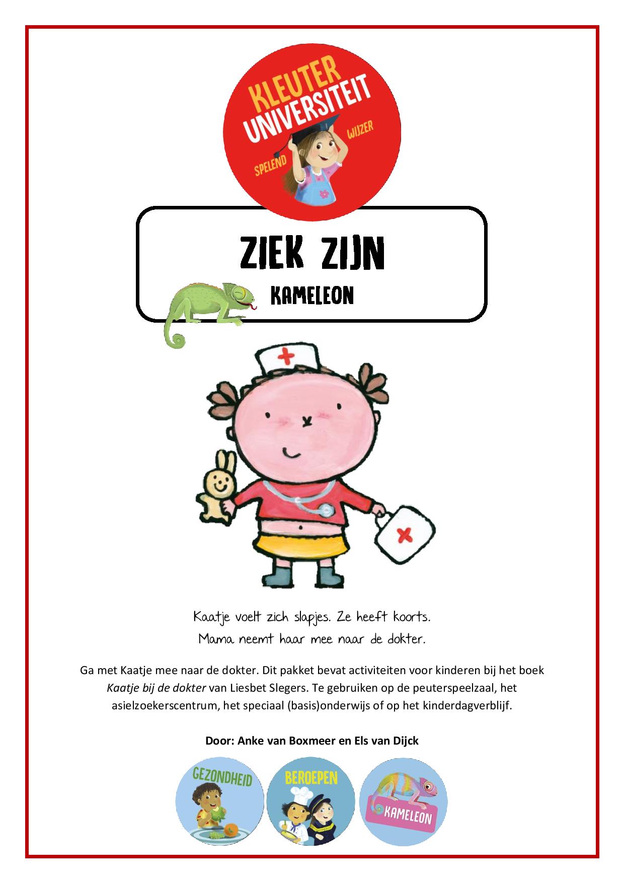 Ga met Kaatje mee naar de dokter. Dit pakket bevat activiteiten voor peuters bij het boek ‘Kaatje bij de dokter’ van Liesbet Slegers. KAMELEON projecten zijn te gebruiken op de peuterspeelzaal, in de eerste kleuterklas, het asielzoekerscentrum, het speciaal (basis)onderwijs of op het kinderdagverblijf.