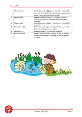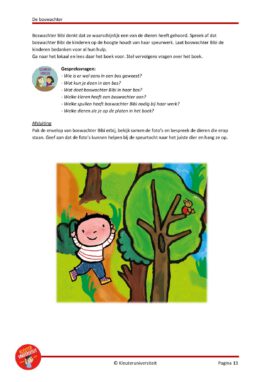 De betrokkenheid is vanaf het begin van het thema hoog, omdat de startactiviteit de kinderen meteen in actie zet. Door het verdienen van de buttons worden ze meegenomen met boswachter Bibi en al haar taken als boswachter. De hoeken zijn perfect aan te passen aan het thema, vooral als je de kinderen betrekt bij het verzamelen van materialen. De activiteit ‘verschillende bomen’ is super om aan het begin van het thema te doen, zodat de kinderen daarna de bomen kunnen herkennen tijdens een wandeling of speurtocht in het bos. Ook de activiteiten ‘aan de riem’ en ‘afval opruimen’ waren super! Met ‘de dag van de boswachter’ en ‘ de seizoenen’ krijgen de kinderen binnen het thema meer inzicht in tijd en fases van de dag en het jaar.